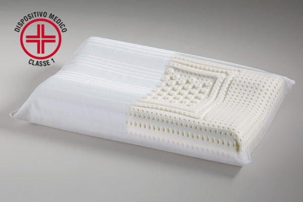 - Monoblocco in Memory Air, con sagomatura cervicale ad onda e canali di ventilazione, a celle aperte intercomunicanti, traspirante, automodellante, indeformabile