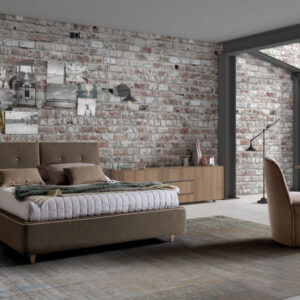 Letto-contenitore con rivestimento in tessuto, rispettoso dei più tradizionali canoni di eleganza e armonia strutturali, Lara ripercorre fedelmente le tracce della linearità e della pulizia delle forme, fino ad irrompere in una gradevole, quanto inaspettata, curvatura all’apice della testiera.